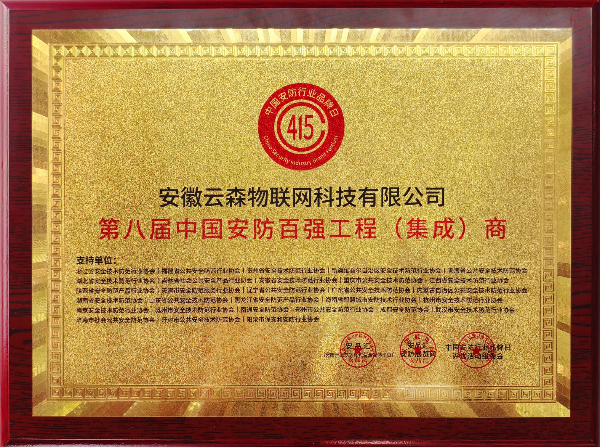 • 云森物聯網榮獲“2025年度中國安防行業優秀解決方案服務商”、“第八屆中國安防百強工程(集成)商” 2025-05-19